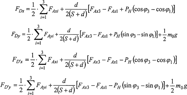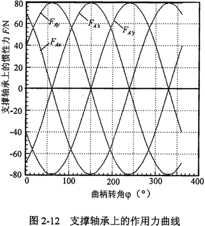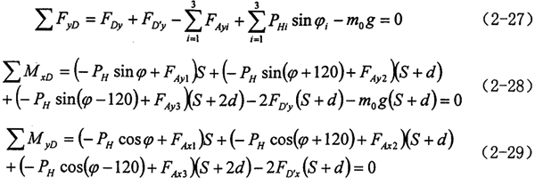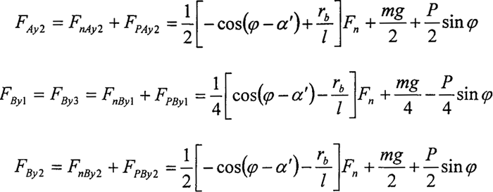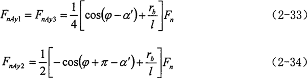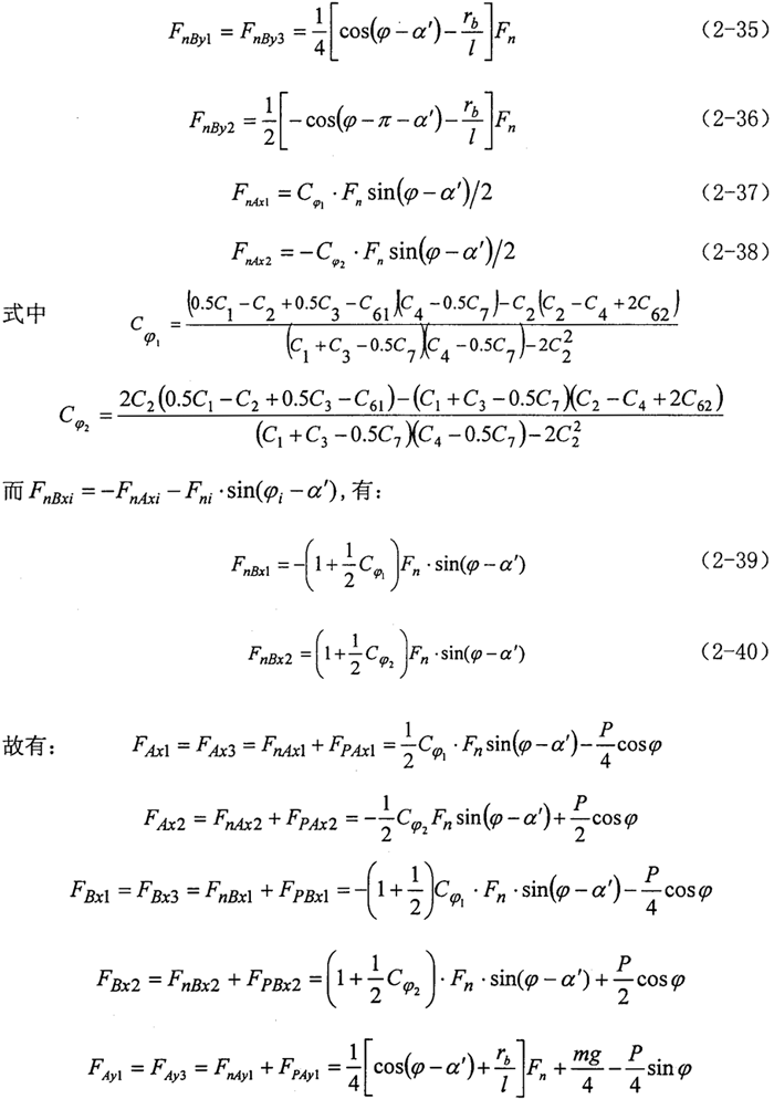 2.曲柄轴支撑轴承的作用力分析 根据力学原理,对于输入同可得到下列方程式: