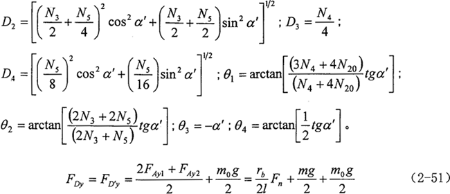 将上述方程中的A和D′换成B和G′,以及rb/l换成-rb/l便得到了支承轴的支撑力。