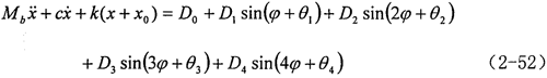 式中 Mb——曲柄轴质量的一半;C——轴承阻尼系数;k——轴承刚度。