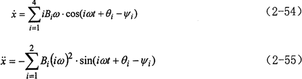 对公式(2-53)求一阶导数和二阶导数,可得速度和加速度响应。
