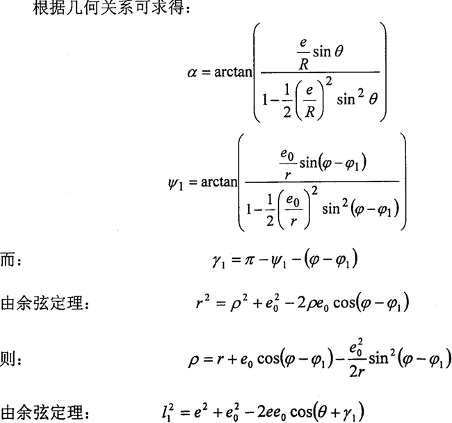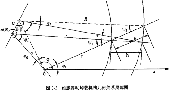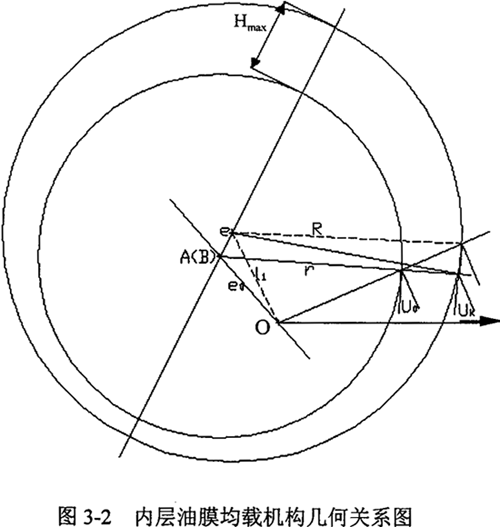 油膜浮动均载机构的几何关系如图3-2和图3-3所示