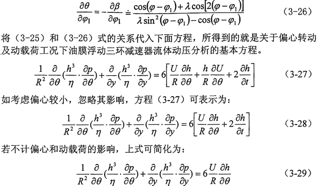 依据流体动力润滑理论,首次建立了偏心转动及动载工况下三环减速器油膜浮动的流体动力润滑方程,为其动力学研究奠定了基础。