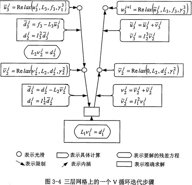 图3-4所示为三层网格上的一个循环的具体计算步骤。