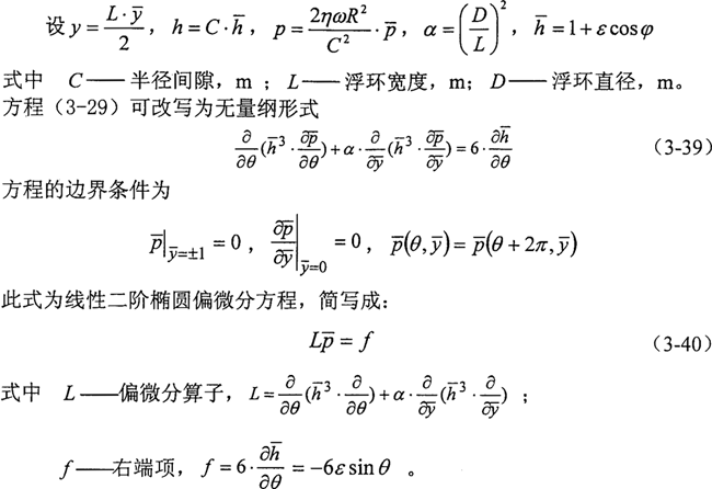 由于将有量纲方程化为无是纲形式后,方程形式主得简单,便于计算,而获得的结果又便于推广到与此轴承相似的各类尺寸的轴承,故,有必要将雷诺方程无量纲化。