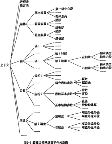 从图4-1中衍生的圆往齿轮减速器设计专家系统的数据间的逻辑组织形式如图4-2。