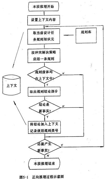 正向推理系统中,用户先输入与当前问题有关的信息,构成当前数据库(上下文)。正向推理的示意图如图5-l。