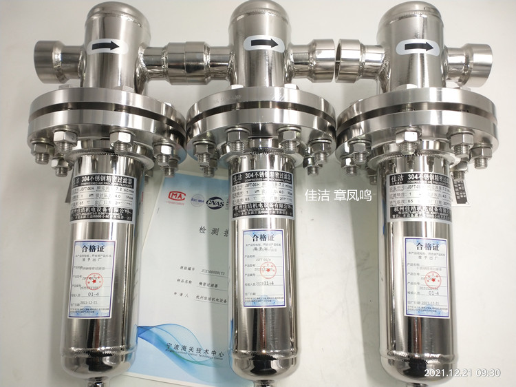 氮气除尘不锈钢过滤器 氦气氮气过滤器【5】我司的产品为原厂替代件,本公司涉及的其它品牌均无品牌意义,只是作为产品型号参照和客户选型对照使用。杭州佳洁长期生产食品级不锈钢过滤器,产品经第三方检测认证,公司生产的滤芯滤材经第三方按FDA标准检测认证,各个微米,颗粒物数量经第三方检测认证,除尘、除油水、除菌效果经第三方检测认证。杭州佳洁提供不锈钢过滤器GMP认证、AIB认证材料,帮助企业顺利通过生产认证考核。进入压缩空气不锈钢除菌过滤器的空气是除湿脱油的空气,相对湿度应保持70以下,以使过滤效果达到好状态;过滤效果:耐高温的蒸气杀菌,每次20-30分钟,120次杀菌使用,效果达到99.99.压缩空气过滤器故障及处理方法: 故障 原因 处理方法压损增大1.安装时压损过高 1.选型偏小2.滤芯堵塞、哀老3.滤筒积水 2.清洗或更换滤芯4.自动排水器失灵5.进气杂质负载大 3.排除积水 4.清洗或调换排水器 5.进行预处理微信13777578106联系方式:0571-85228373; 15336583523; 594175663@qq.com联系人;章凤鸣