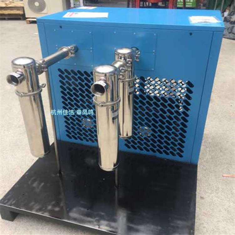 冷冻式空气干燥机 空气冷冻式干燥机冷干机【5】我司的产品为原厂替代件,本公司涉及的其它品牌均无品牌意义,只是作为产品型号参照和客户选型对照使用。杭州佳洁长期生产食品级不锈钢过滤器,产品经第三方检测认证,公司生产的滤芯滤材经第三方按FDA标准检测认证,各个微米,颗粒物数量经第三方检测认证,除尘、除油水、除菌效果经第三方检测认证。杭州佳洁提供不锈钢过滤器GMP认证、AIB认证材料,帮助企业顺利通过生产认证考核。工作原理:压缩空气中水蒸气的量是由压缩空气的温度决定的:在保持压缩空气压力基本不变的情况下,降低压缩空气的温度可减少压缩空气中的水蒸气含量,而多余的水蒸气会凝结成液体。冷冻式干燥机就是根据水的饱和蒸汽压力和温度之间的对应关系,l用制冷装置使压缩空气冷却到一定的l点温度,析出所含的水份,通过汽水分离器与电动排水器将水排出,从而使压缩空气得到干燥。采用百福马、比泽尔或同等j的制冷压缩机,性能可靠,保Z设备长期、稳定的运行。干燥过滤器采用丹佛斯或同等j的产品,体积小、过滤面积大,能有效过滤冷冻系统中的水分和杂质,提高系统洁净度,降低设备的故障率。蒸发器采用紫铜管胀接套铝翅片的结构,换热效率g,l点有保障。水冷凝器采用g效的列管式结构,换热效率g,保Z系统正常、稳定的运行。压力控制器采用丹佛斯或同等j的产品,保Z设备的准确控制。风冷凝器采用铜管胀接套铝翅片的结构,换热效率g,冷凝风机风量大,增加系统的散热效果,保Z系统正常、稳定的运行。 电子排水器,定时排出压缩空气中凝结出的水分,提升空气干燥度,保Z压力l点。微信13777578106联系方式:0571-85228373; 15336583523; 594175663@qq.com联系人;章凤鸣