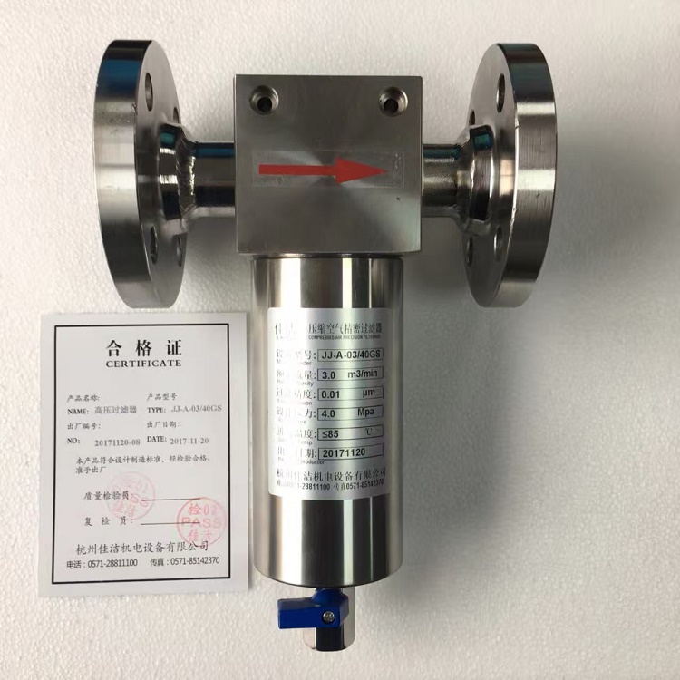 ![]() 4 压缩空气不锈钢除油污过滤器 压缩空气油水过滤器 问:为什么压缩空气中油水的危害大? 答:在一些要求严格的地方,比如气动控制系统中,一滴油能改变气孔的状况,使原本正常自动运行的生产线瘫痪,有时,油还会将气动阀门的密封圈和柱体胀大,造成操作迟缓,严重的甚至堵塞,在由空气完成的工序中,如吹形件,油还会造成产品外形缺陷或外表污染。